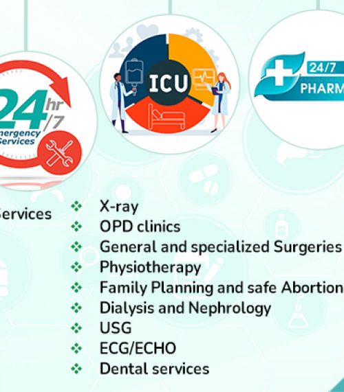 This hospital is providing tertiary level clinical care, backed by multidisciplinary team of doctors. The primarily focused areas are Orthopedics, Nephrology and Dialysis, General Surgery, Pediatrics Surgery, Neurosurgery, Pulmonology, Obstetrics & Gynecology with Family Planning and Safe Abortion services including 24 Hours Emergency Services, ICU, OT, 24 Hours Pathology& Radiology services as well as Home health Services. A team of eminent consultants have ensured that the highest standards are always maintained. The hospital has built up an enviable reputation for dependable and ethical practices and system. The one agenda that has always been the top priority is we are “COMMITTED TO HEALTHCARE EXCELLENCE”.